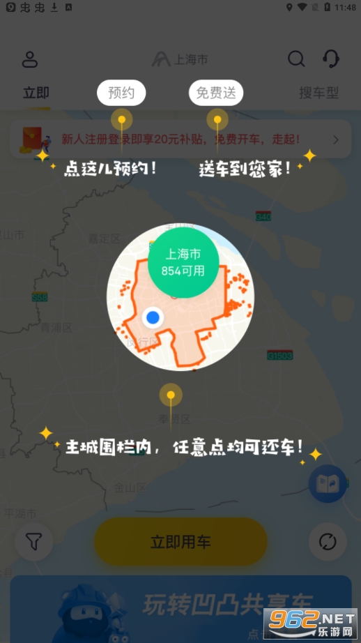 【凹凸共享车】分时租车,无桩取还,注册即享2小时25公里免费开!