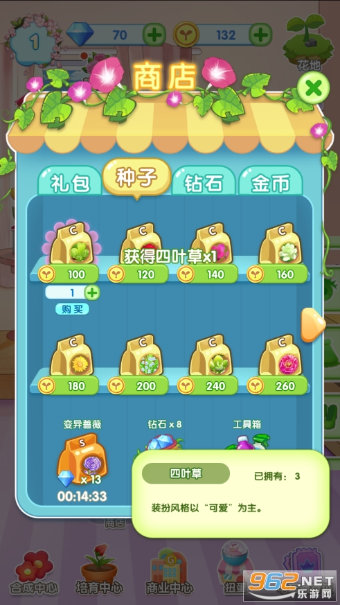 《魔法花园换装 GardenDressup》这是一款非常好玩的休闲娱乐游戏,在游戏中玩家需要购买植物的种子,进行种植、浇水、收获,当玩家收获时就有可能获得人物不同风格的装扮,不同的种子装扮的风格也是不同的。游戏内容十分有趣,感兴趣的玩家们快来下载体验吧!