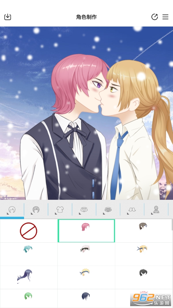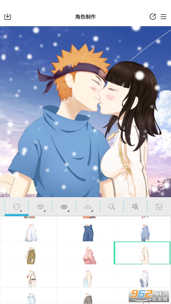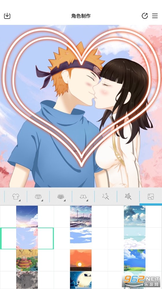 动漫情侣头像制作是支持点击动作,可以选择各种装扮部分。您可以自由创建自己喜欢的角色。此外,您还可以与朋友分享,设为壁纸和封面。