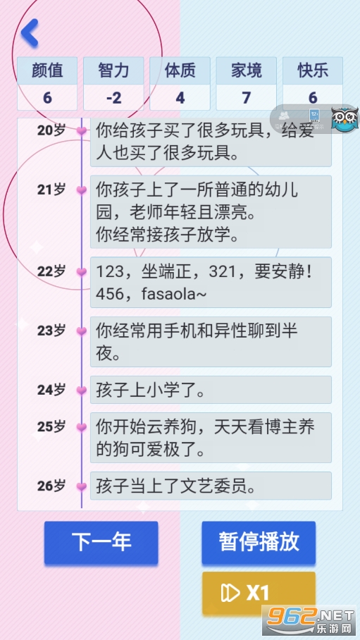 比较好玩的以恋爱为主题的模拟游戏,画风看起来很简约,玩法操作也和我们熟悉的人生重开模拟器差不多,让玩家在游戏中获得全新的恋爱体验,拥有新的人生经历!