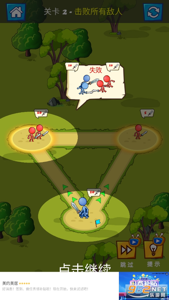 火柴人大英雄是一款火柴人策略战争游戏。游戏操作简单,玩家需要在游戏中充分发挥自己的策略布局能力,规划好火柴人士兵的行进路线,不断拯救和收服士兵壮大我方力量,然后集结优势兵力一举消灭敌人。游戏中还有丰富的关卡可供玩家挑战,你还在等什么,赶快来加入这场火柴人的战争中来吧,看看谁才是火柴人大英雄!