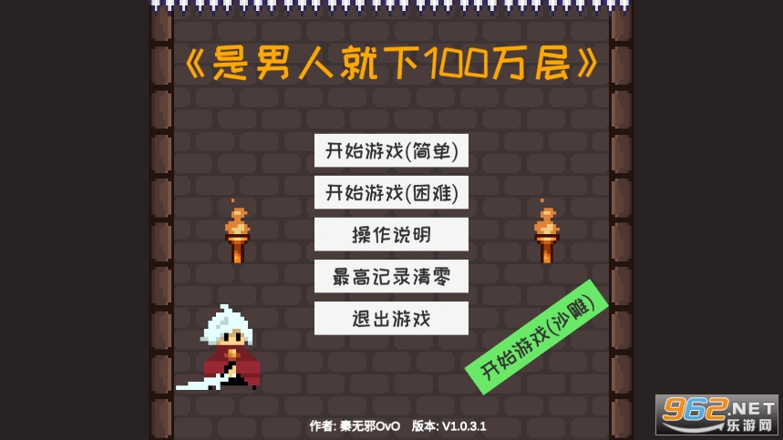 《是男人就下100万层》是一款非常魔性的休闲娱乐游戏。与众不同的经典游戏!游戏中三种模式供玩家游玩,简单,困难和沙雕。在沙雕模式下,游戏操作难度将大幅度上升,你根本想不到将会有什么样的陷阱和特性等着你,感兴趣的玩家快来下载挑战一下吧!