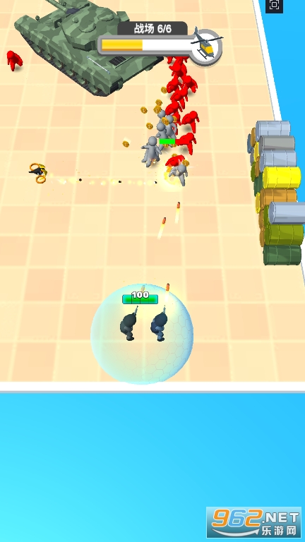 《点点勇士》是一款放置类型的点击闯关小游戏,采用了Q版卡通风的设计,玩家将通过上帝视角体验游戏,虚拟摇杆控制手中的士兵,灵活的走位移动,发射子弹,消灭四面八方朝你涌来的敌人,不让它们靠近你,还能解锁新的士兵,组建阵容,迎接越来越难的挑战!