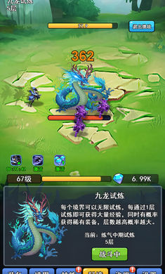 游戏中玩家扮演一位修真新人,逐步修炼成长,游戏中共设立了64个境界,玩家由练气初期一直修炼至尊境界,修炼的过程中可以挑战秘境,接受神龙的试炼,通过试炼可以获得神龙的奖励。