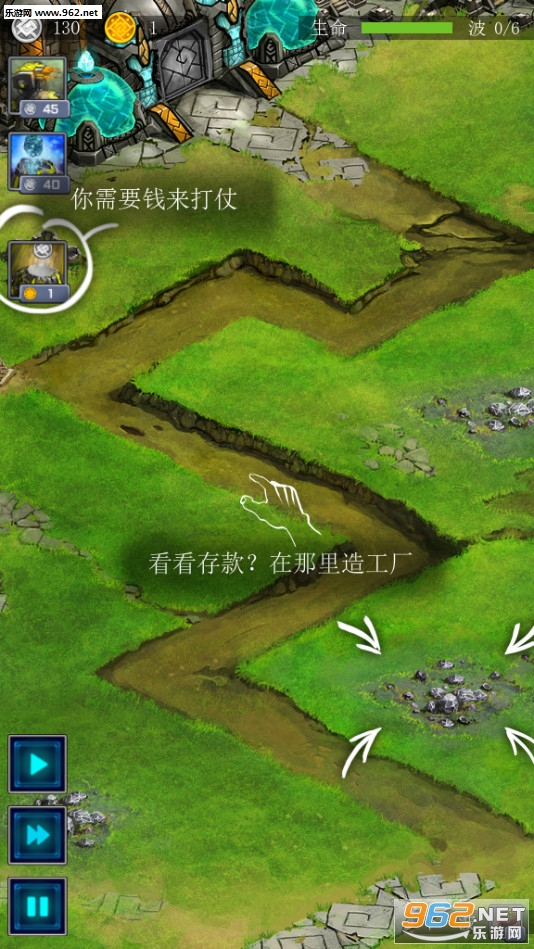 在任意的空地上建造防御塔;