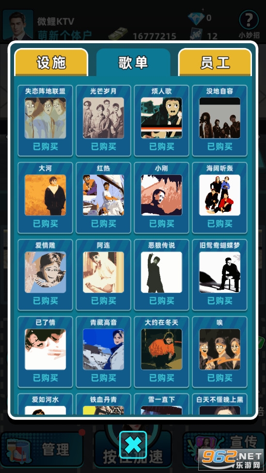 从简单的入门KTV开始白手起家,建立包厢,升级设施。从宣传拉客到开房点歌,