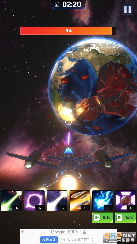 玩家们可以不断的破坏星球,这样讲就能获取更多的金币来升级你的飞船。
