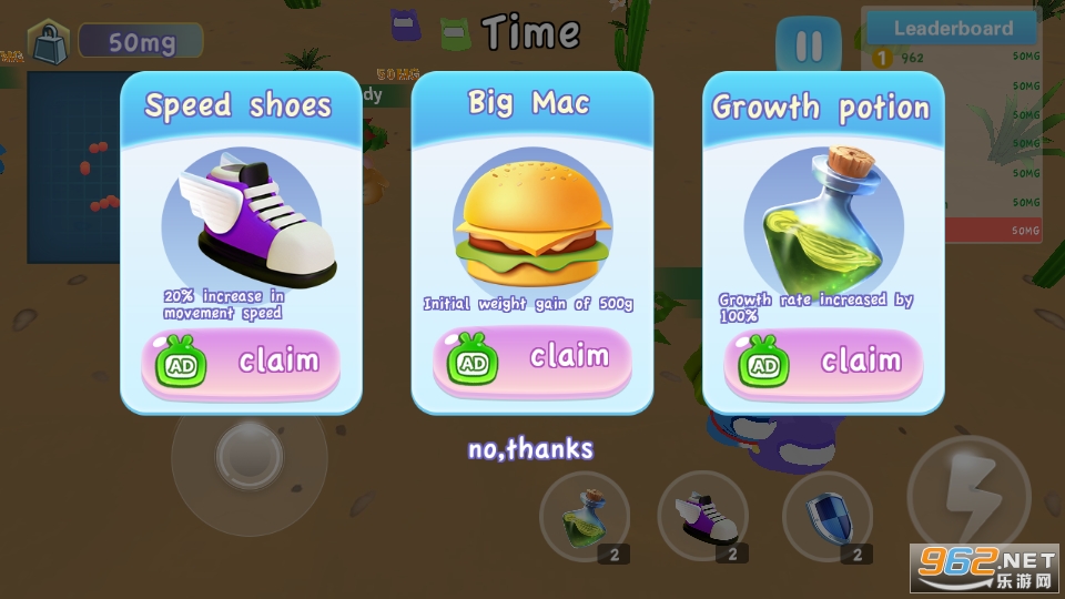 2.在规定时间内,讨论球的大小(即重量)赢得排名和金币,然后可以购买喜欢