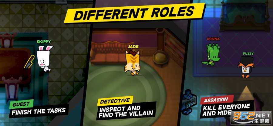 游戏主要玩法以解迷为主,游戏最多可以支持九人进行对局。每个人都有不同的身份,隐藏自己,不要成为下一个受害人。找出凶手。