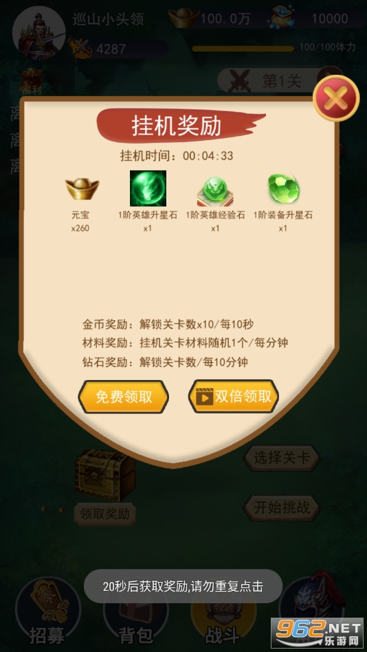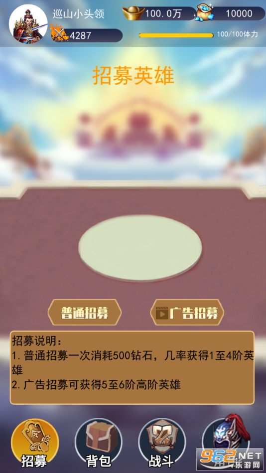 游戏目标是通过招募英雄大哥提升战力,然后征战关卡,提升大哥的战力