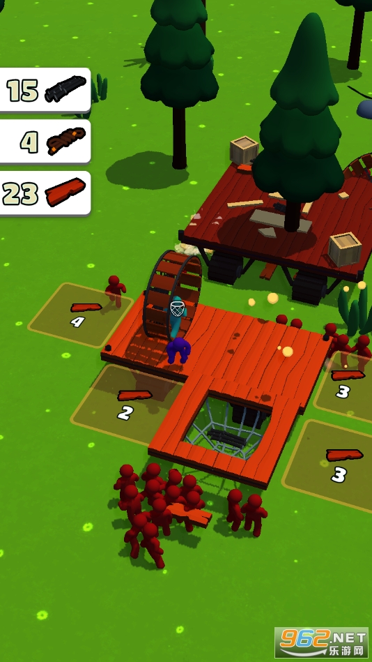 一款伐木建造求生的游戏。这款游戏玩法十分简单容易上手,只要靠近树木就会自动挥动斧子砍伐,收集足够的木材建造属于你自己的城堡、伐木场、武器店等建筑,还可以修建炮台,箭塔来防御不断进攻而来的敌人。在冒险模式中不断挑战各种关卡收集木材和金币,用来强化你的攻击和防御,升级完善你的家园。