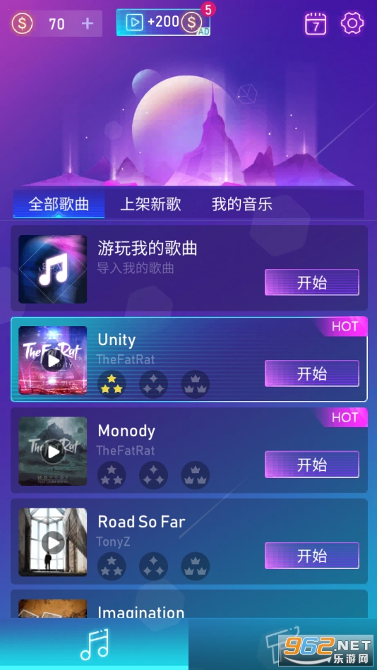 3、数千首不同风格的音乐等待玩家前来挑战。