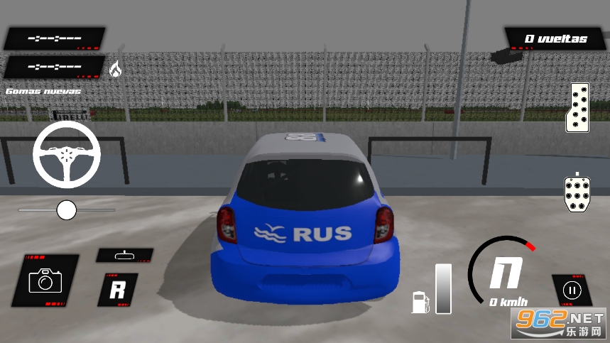 右下角为油门键,左下角为刹车,采用重力感应系统来控制你的赛车方向;
