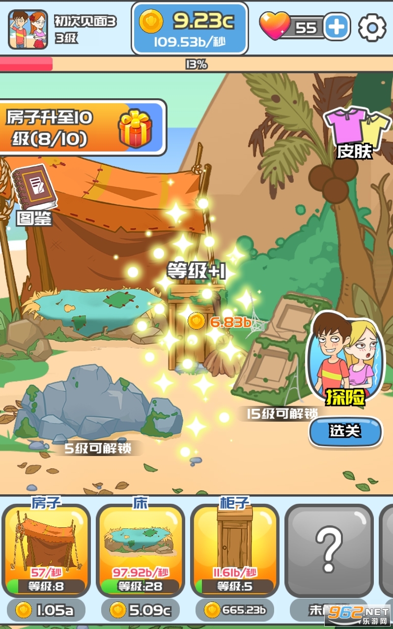 《我和校花的荒岛求生》是一款结合了模拟经营和解谜玩法的休闲向游戏。
