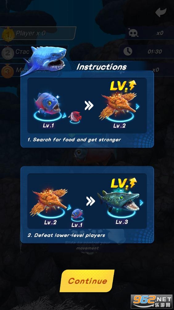 《鱼食者安卓版》是一款非常好玩的海洋捕食类游戏,简单的游戏玩法,轻松的游戏体验,操作也方便,玩家控制鱼类进行吞噬,不断升级和进化,给你最好最棒的游戏乐趣,感兴趣的朋友还在等什么?欢迎来962下载吧!