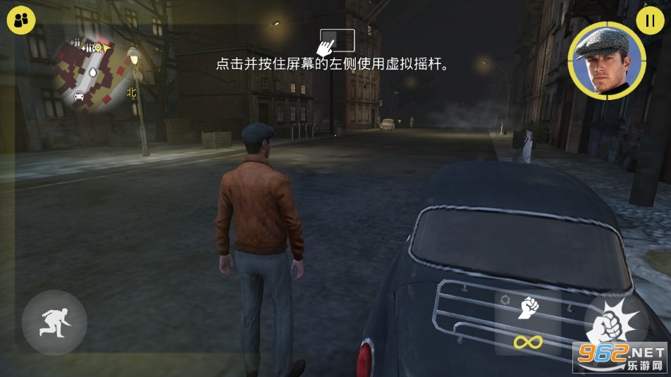 2、实际操作上,左侧是虚似按键和背刺键,右侧是任务键,有驾车,打枪等不一样的专业技能。
