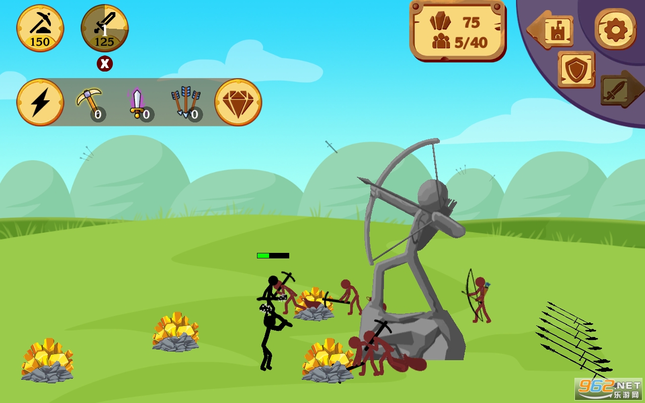 1、游戏中玩家将亲临激烈刺激的战场,指挥你的火柴人勇士进行作战,而且游戏中有着各种火柴人士兵可供训练;