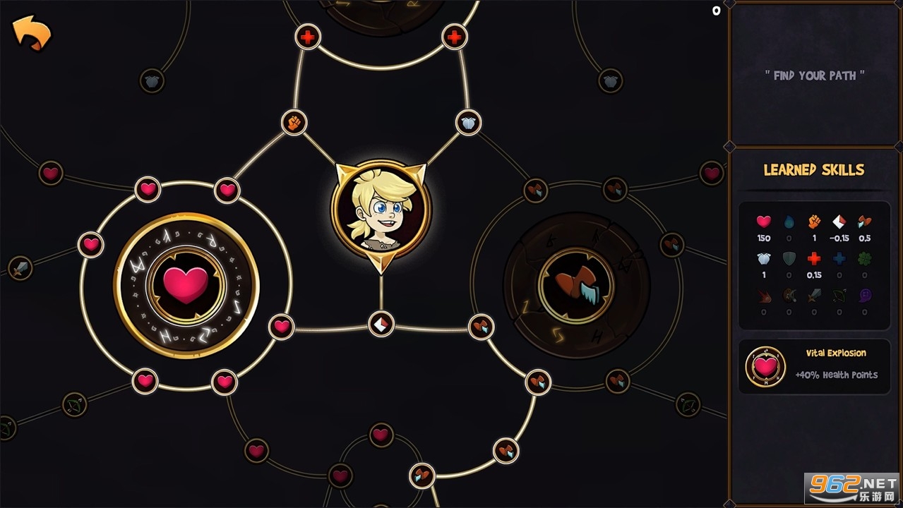 在大量的技能树中进行探索,获取经验并花费技能点。
