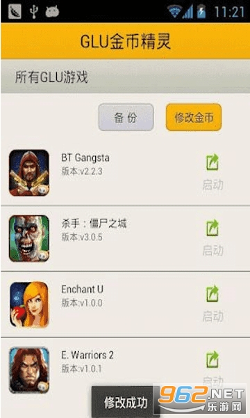 3.启动glu金币修改器并等待修改成功