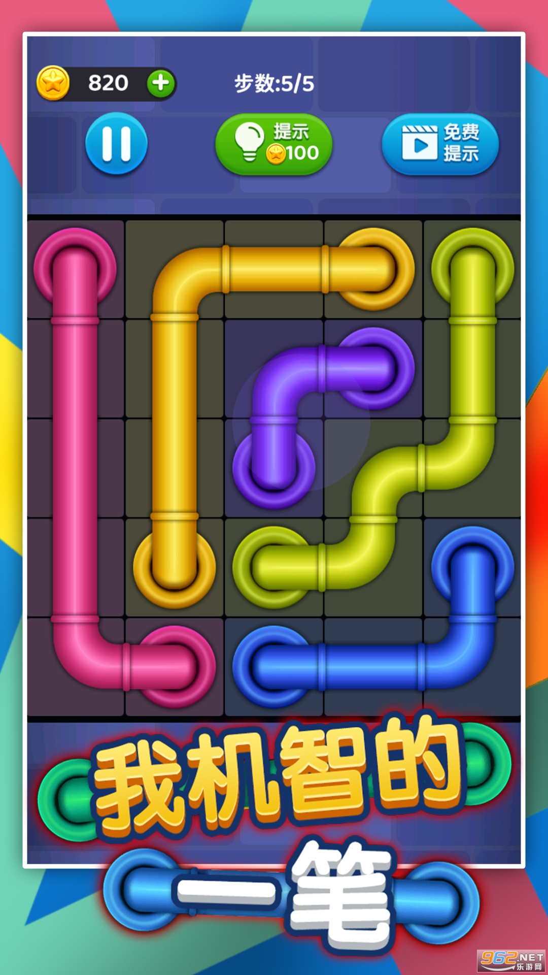 《我机智的一笔》是一款脑力解谜连通管道的游戏,手指轻松滑动只需要一笔就能将管道连接起来,每一个关卡中管道所摆放的位置以及管道的数量都是不一样的,最重要的管道朝向也是不相同的,玩家们需要多花点时间认真去思考,找到办法再动手。
