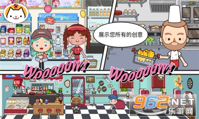 1、趣味的模拟经营玩法,Q版可爱的人物画风,解锁超多酷炫的场景;