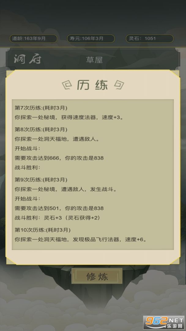 历练:可以获得属性、异兽、灵石。