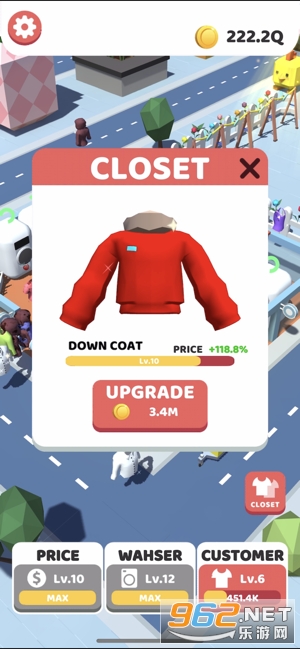 2、玩法简单,玩家要做的就是花钱购各种必备的装饰和工具,然后就可以开始接待客人洗衣,赚取金钱,解锁更好的工具和聘用更好的员工。