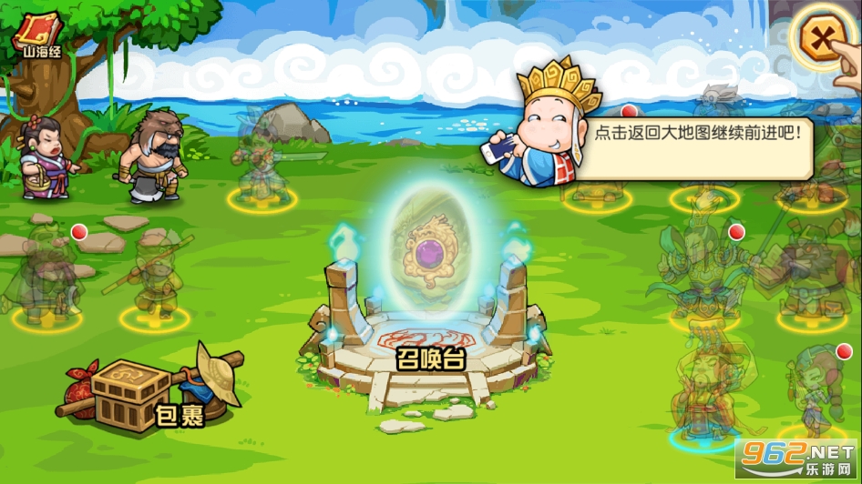 英雄可点击左下角的猴、猪头进入,点击召唤台可随机召唤英雄,英雄可进行体力、攻击、防御和技能等属性点的强化养成,而且升级可大大的增加战力。