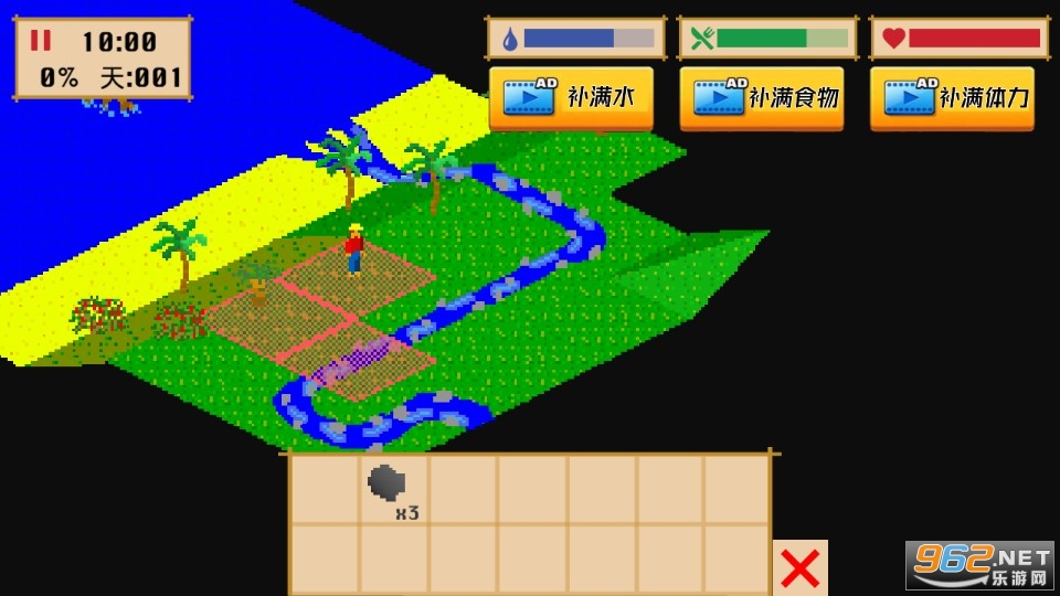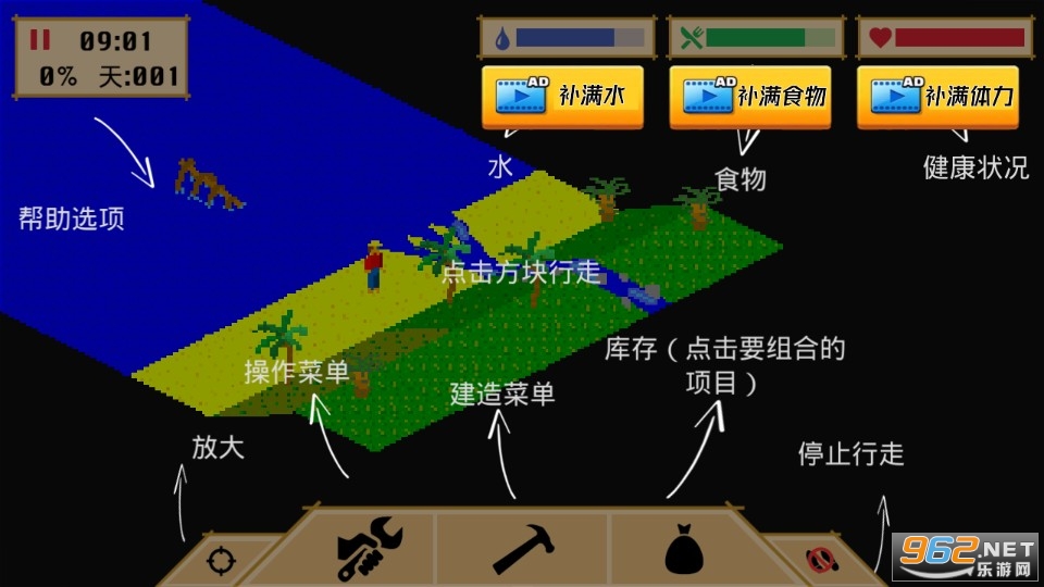 1、玩家在太平洋的一个荒岛上,需要防范各种野生动物才能生存;
