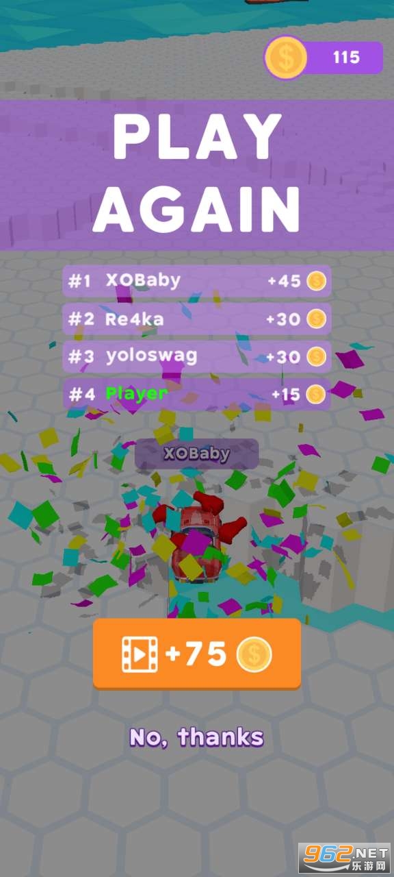 《赛车竞技场》(RaceArena.io)欢迎来到赛车竞技场,在这款游戏中并不比较谁开车比较快,而是在这个不断塌陷的竞技场中存活到最后,游戏的操作简单容易上手,还有着超多有趣的挑战等待着你,赶快下载试试吧!