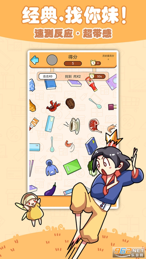 在规定时间内,快速找到需求物品,测快测准测反应!好友PK功能加紧上线中,你可以和好友在游戏中拼手速,占据榜前的你,其他人都是臭弟弟!