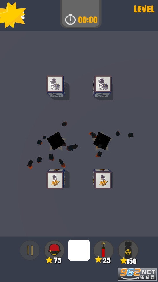 一款轻松有趣的休闲匹配游戏,在这款游戏中你将匹配所有相同图案的立方体成功完成挑战,游戏的特点在于爆炸,每次匹配都会带来一次爆炸,可能将改变立方体的位置,还可以使用各种炸弹来进行轰炸,推荐给喜欢休闲游戏的玩家。