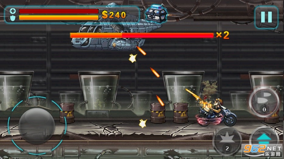 合金风暴是一款动作射击闯关游戏,玩家在游戏中是一位身经百战的战斗精英,这次又接到任务,任务要求她摧毁敌军的军事基地,于是他驾驶着自己的摩托车出发了……