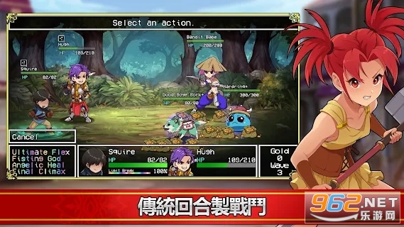回合制战斗——你也许不是一位像样的侍从,但是你拥有一些非传统的特技,来让你侍奉的可怜骑士活命。使用嘲讽、鼓舞、治疗、搜刮来达到胜利!