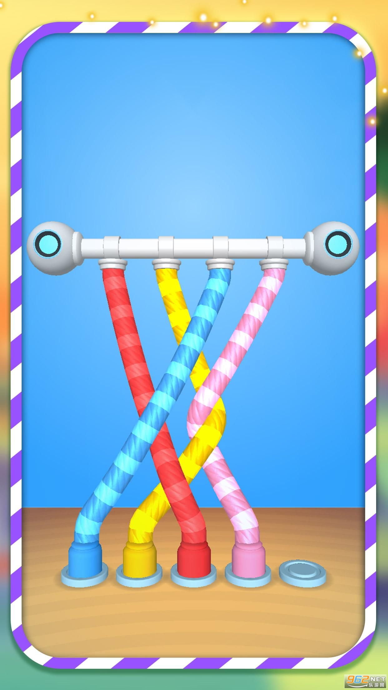在这个游戏中,你想对不同颜色的解开绳索进行排序。你可以花时间解开绳索,尝试不同的策略,看看哪种效果最好。