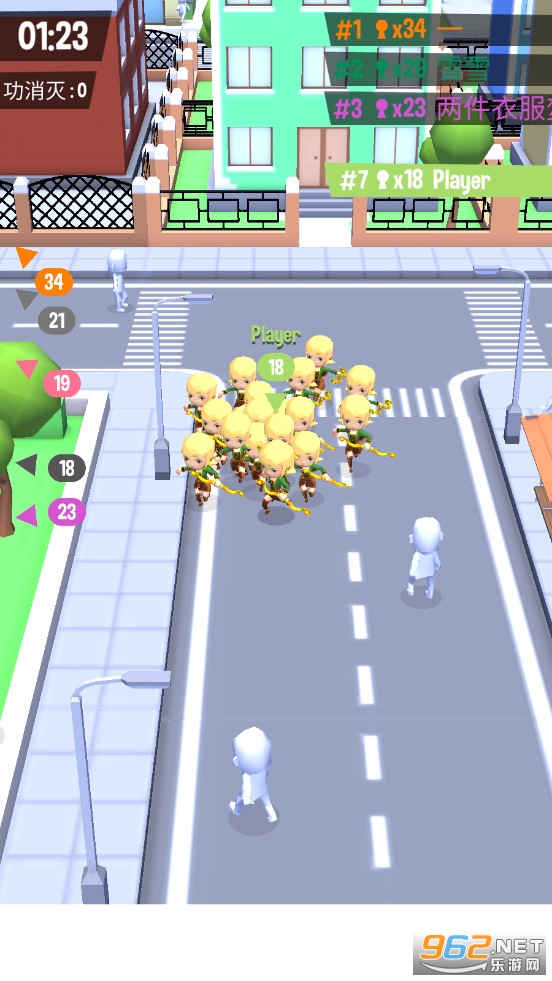 2、非常魔性的游戏玩法,通过不断吸纳零散行人壮大自己的队伍;