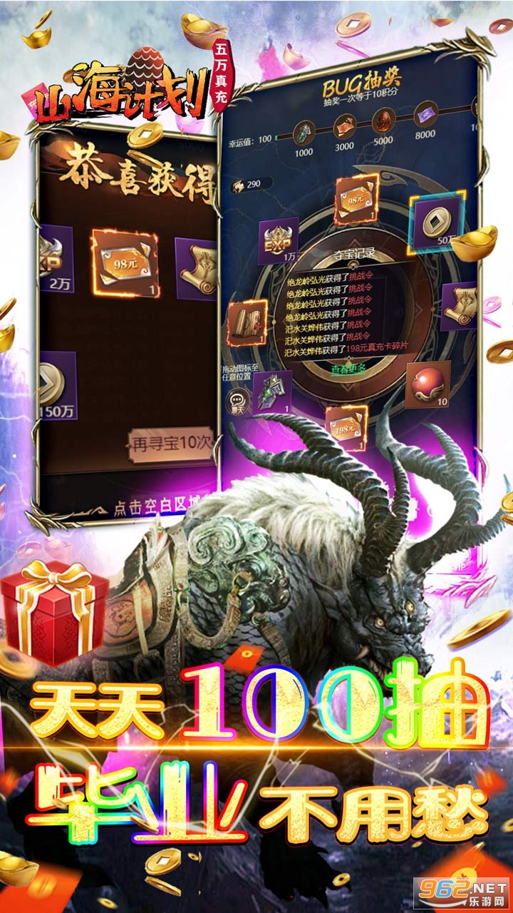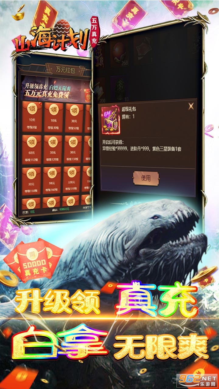 2026年度山海异兽新游《山海计划(送GM五万充)》每天免费领100次BUG抽充,升级再送50000元真充卡!免费满级GM,GM商城全1元宝V!不肝不氪,放置挂机异兽养成。这是以上古山海经为背景打造的手游,上古八荒,异兽萌妖四大种族相互争斗!游戏中存在超多酷炫呆萌的萌妖,狰狞凶狠的异兽,唯致强者方可使萌妖异兽认同!萌妖异兽自由培养,轻松进化无压力,还有众多让人沉醉的仙侠风光,炫酷华丽的战斗特效,激情十足的战斗系统,新颖有趣的社交玩法,结缘萌妖,携手神女,同游仙途,勇闯上古八荒!