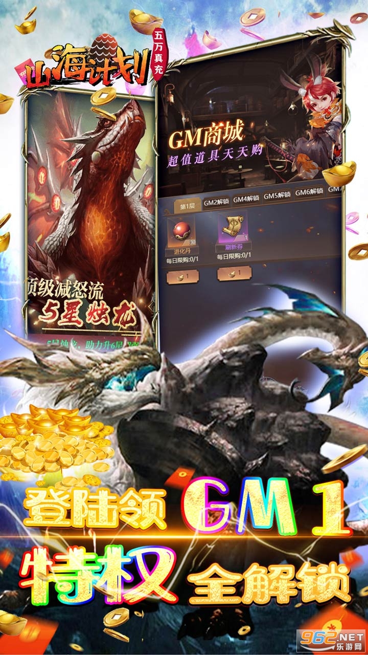 1,开局领个蛋!升级送50000元真充卡!免费激活满级GM!GM商城道具1元宝购买