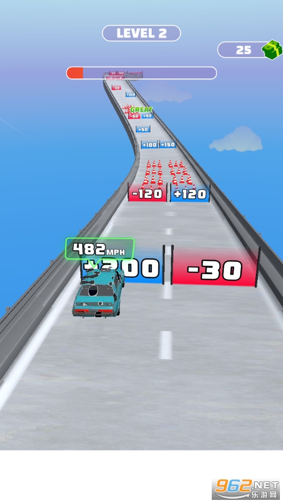 趣味的3D闯关游戏,游戏玩法简单,左右滑动屏幕控制汽车移动,通过蓝色的屏障增加数字,注意如果通过红色的屏障会减少数字,在终点时数字越大奖励越多,喜欢的朋友可以下载试试。