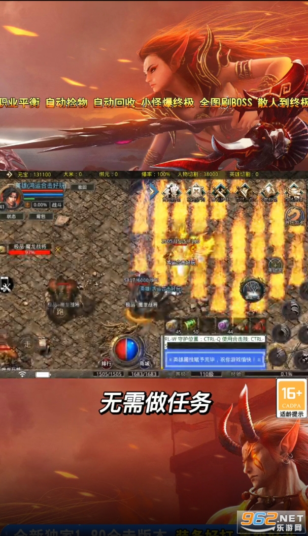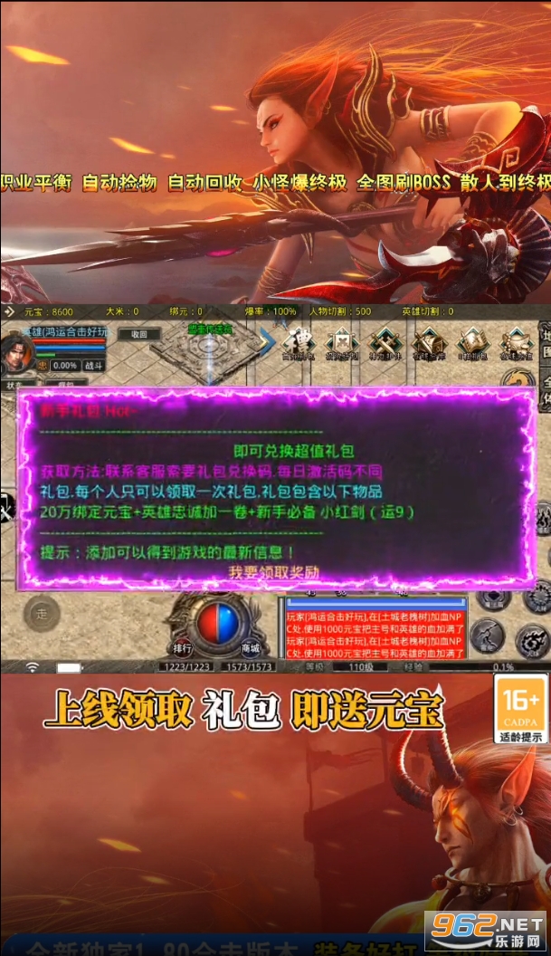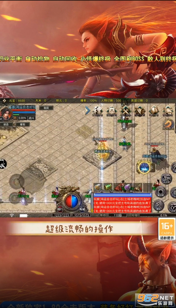游戏的真谛是铁打的兄弟情谊,开会攻城掠地打怪升级,才是游戏的真谛,都是真人玩家,让你在游戏中激情战斗,战场上血战 ,炫酷技能,自由释放,复古霸气的战斗场景,瞬间勾起你的青春回忆,让你感受最刺激的沙场战斗。
