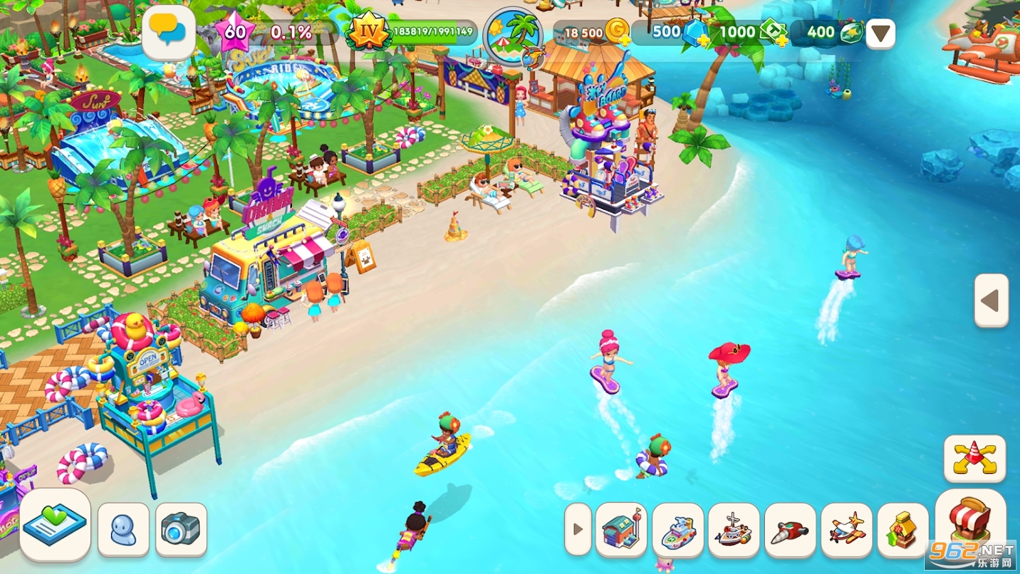 一款有趣的休闲模拟经营游戏,在这款游戏中你将接受这座岛屿进行经营,修建不同的娱乐设施,为游客提供满意的服务,打造一座全方位的度假村,享受愉快的海边假日,推荐给喜欢模拟经营游戏的玩家。