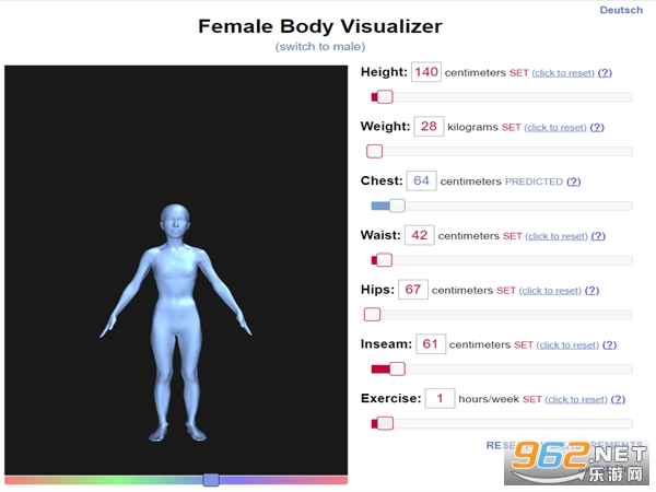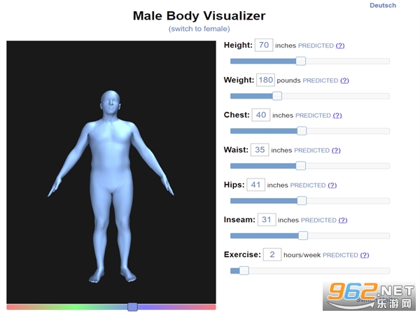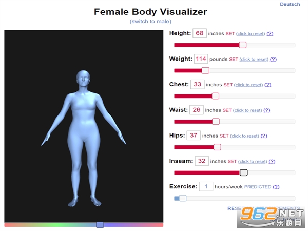 《体形可视化调节游戏》也叫bodyvisualizer游戏,是一款能够通过对体型的数据进行调整来得到立体3d模型的休闲小游戏,让体态以更加直观的立体模型的方式来呈现,支持不同的性别进行切换,还能对皮肤颜色进行任意选择。
