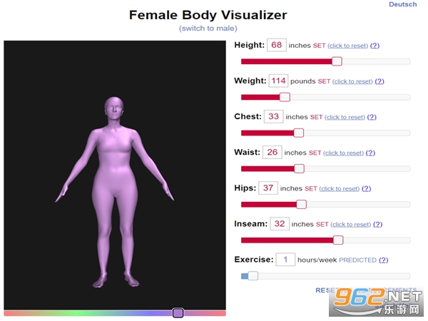 非常有趣的一款能够对你的体型进行可视化调节的小游戏,随时更改各种数据属性,轻松的得到真实的3d人物模型,让体型体态能够以更加直观的方式呈现!