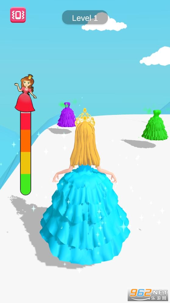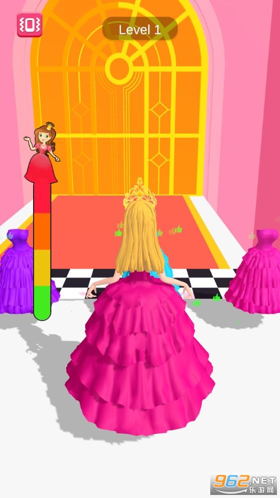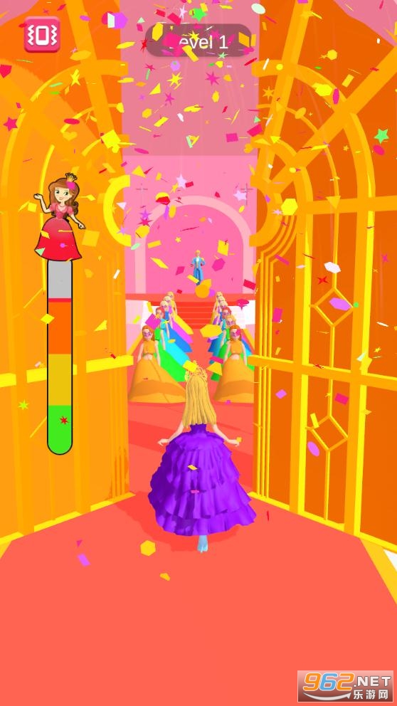 3D公主酷跑玩家需要小心躲避,避开这里的危险,在道路中去收集更多精美的时装,让公主变得更加美丽,在终点处与王子邂逅,点击屏幕开启挑战,操作方式上也是非常简单的,左右移动躲避游戏中的危险,以完美的表现到达终点,抵达终点,在这与王子相遇。