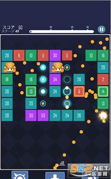 敌人在“太空攻击:球与砖” (Space Attacks: Balls and Brick puzzle master) 游戏中占据了你的屏幕,