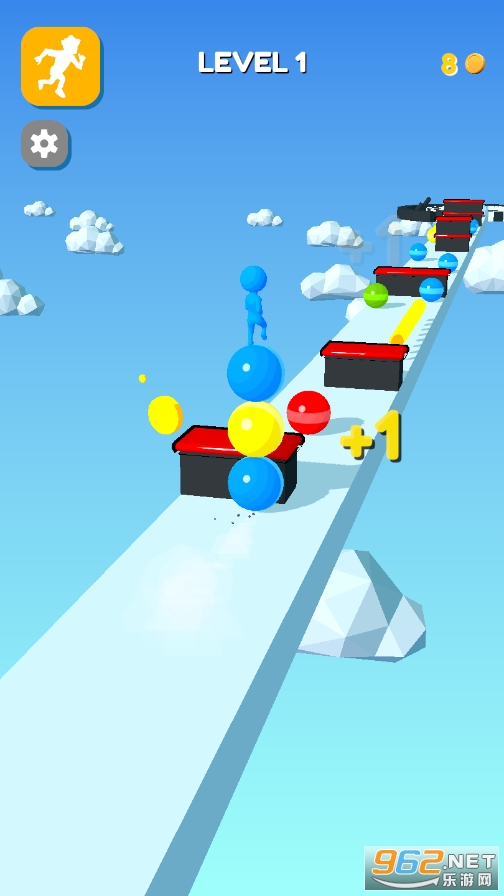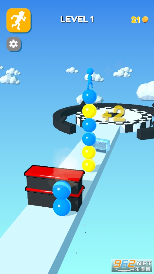 2、保持球体的高度并冒险,让你的角色向终点线冲刺,注意不要被障碍击倒;