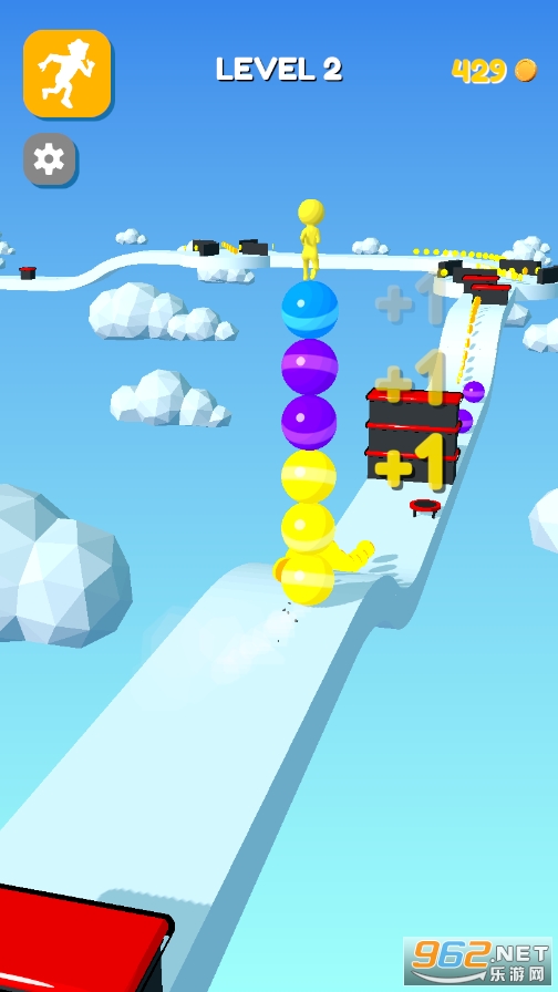 1、前方会有不同的障碍物阻碍你的前进,将球堆起来完成关卡;