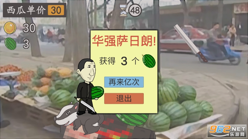 《华强劈瓜原版》来自于孙红雷主演的电视剧《征服》第八集中的场景,后来由b站玩家进行了魔改,我们在刷视频弹幕的时候都看到过,玩家在华强劈瓜游戏里面将扮演主角刘华强,前去买瓜,在小摊上不断地切西瓜,哈密瓜,玻璃,橘子等等水果,切一个的一分,看看你能获得多少分!