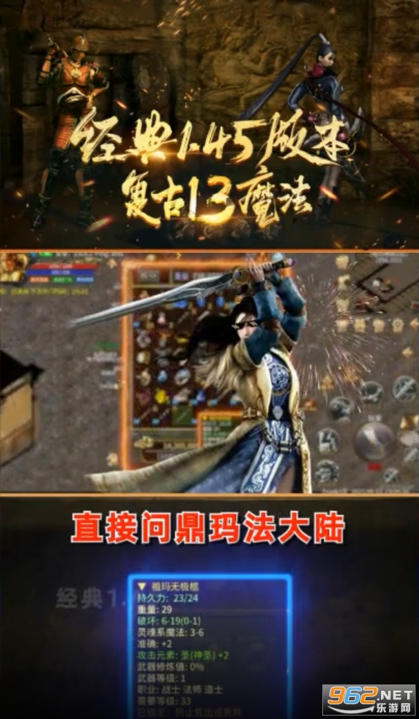 这款游戏原汁原味的还原了端游的操作玩法和游戏画面。,复古的画面龙城再现谁与争锋,帮派大战不服就是干,白天打到晚上,晚上打到天亮直到你服!而且玩家能够体验到三端互通的游戏属性,玩家不管在哪个平台游玩,内容都是可以互通!