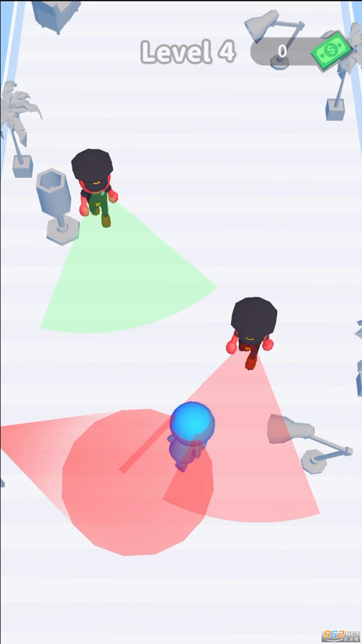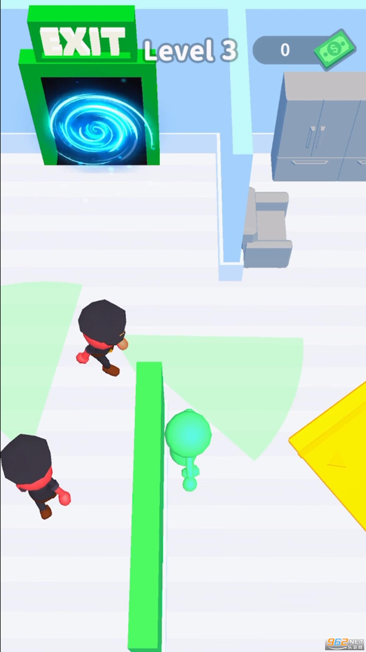 拖动你的手指移动,靠近墙壁和家具可以融入环境,走到出口,不要被敌人抓住。